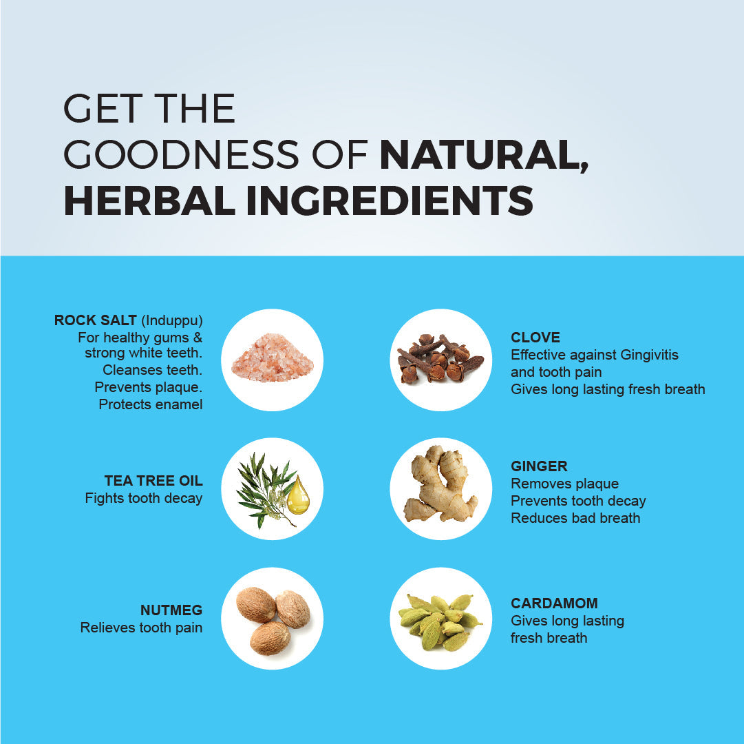 Our natural salt toothpaste has the goodness of rock salt, ginger, Tea Tree oil, which restrict the growth of diseased causing bacteria and maintain oral